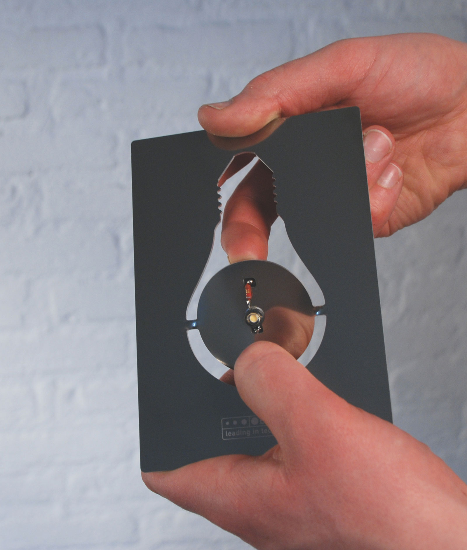 This sophisticated promotional gift introduces the public to the possibilities of the new generation of power LEDs; they are small, power-efficient, and virtually indestructible. As a design object in traditional postcard format, it can be shipped by regular mail to your family, friends and relations, where it transforms with one single twist into an ambient lighting fixture.