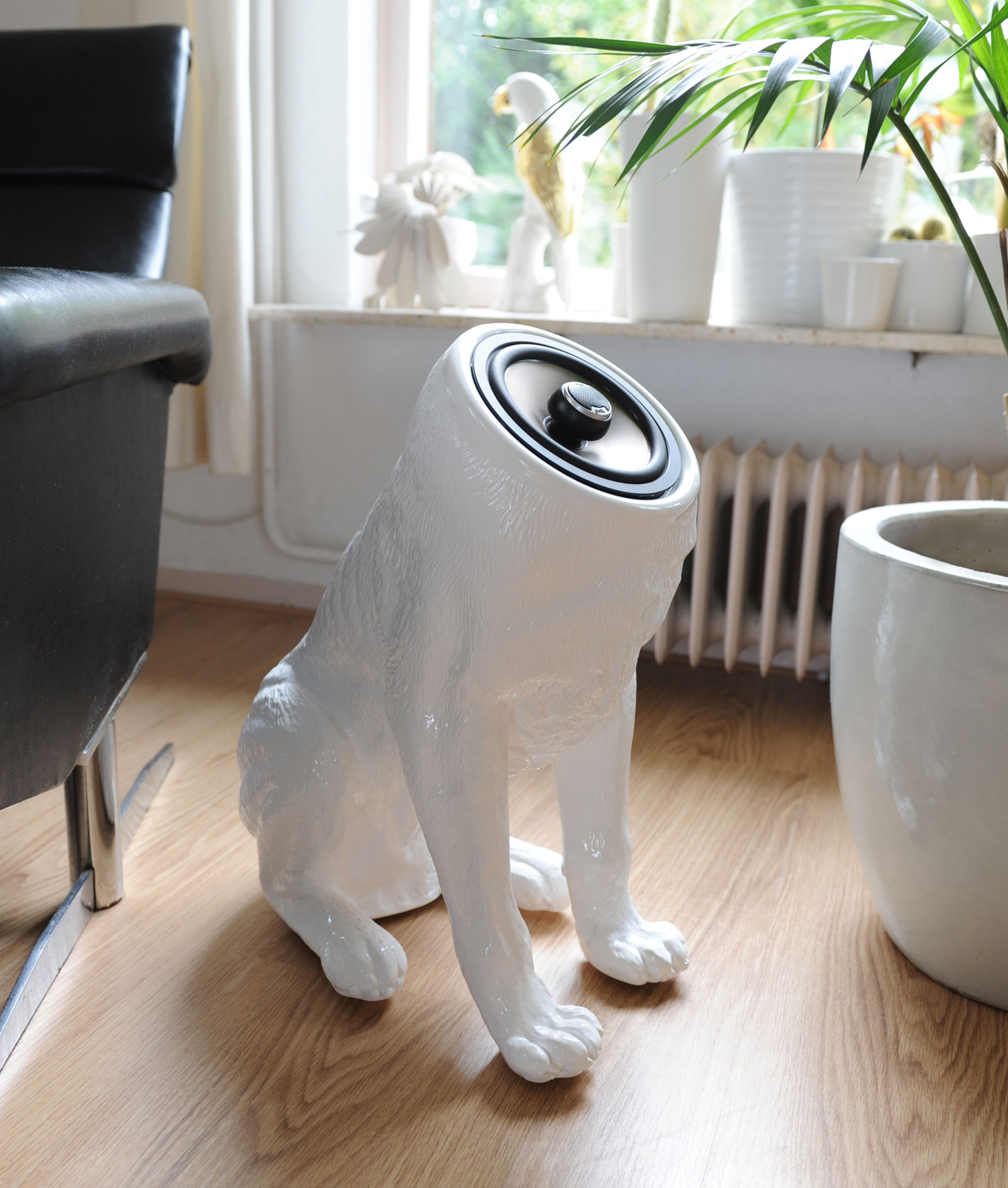 This is functional kitsch; the wrong becomes the new right. By adding a function to an otherwise grotesque object, it acquires new aesthetic values, becoming an object of desire. Pun intended; these woofers hold the midst between a loyal 4-footed companion and an addition to your sound system.